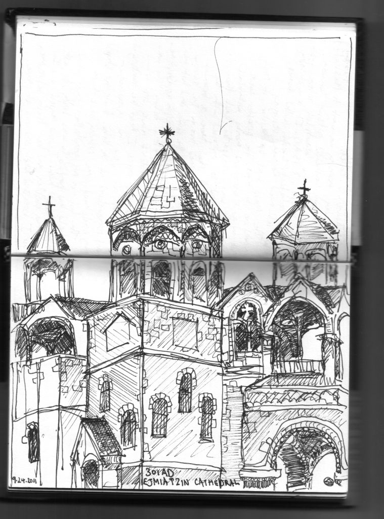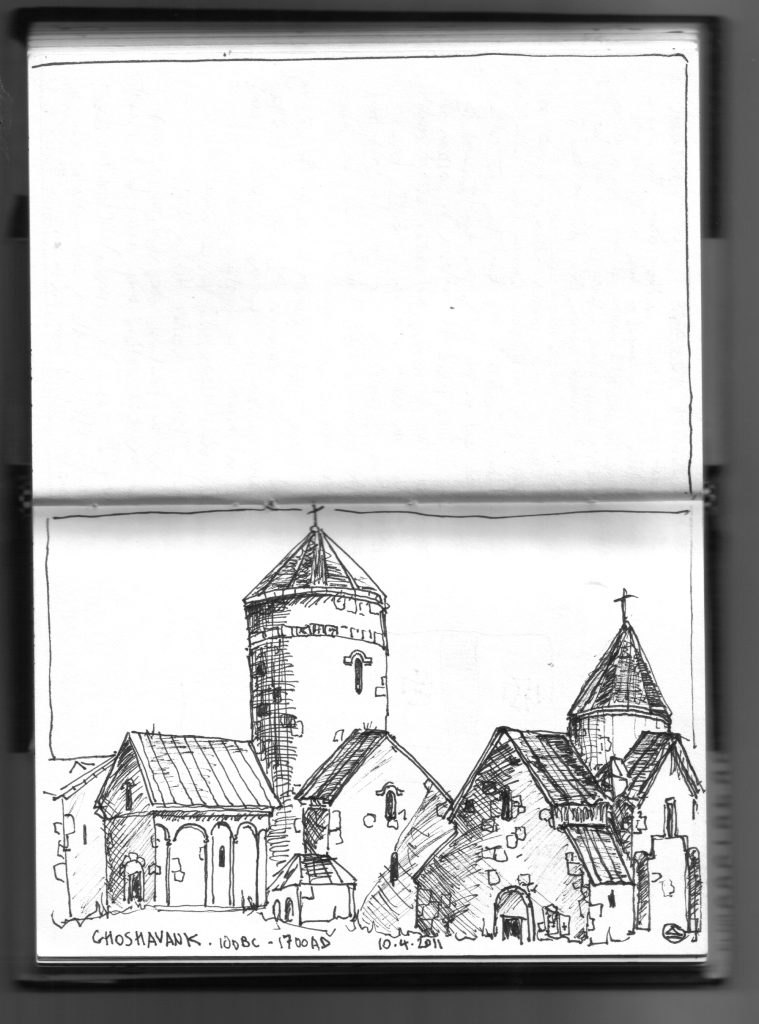 Architecture from Armenia, Georgia and Drawings from Eastern Europe. Churches and Cathedrals carved from rock thousands of years ago and still in use.