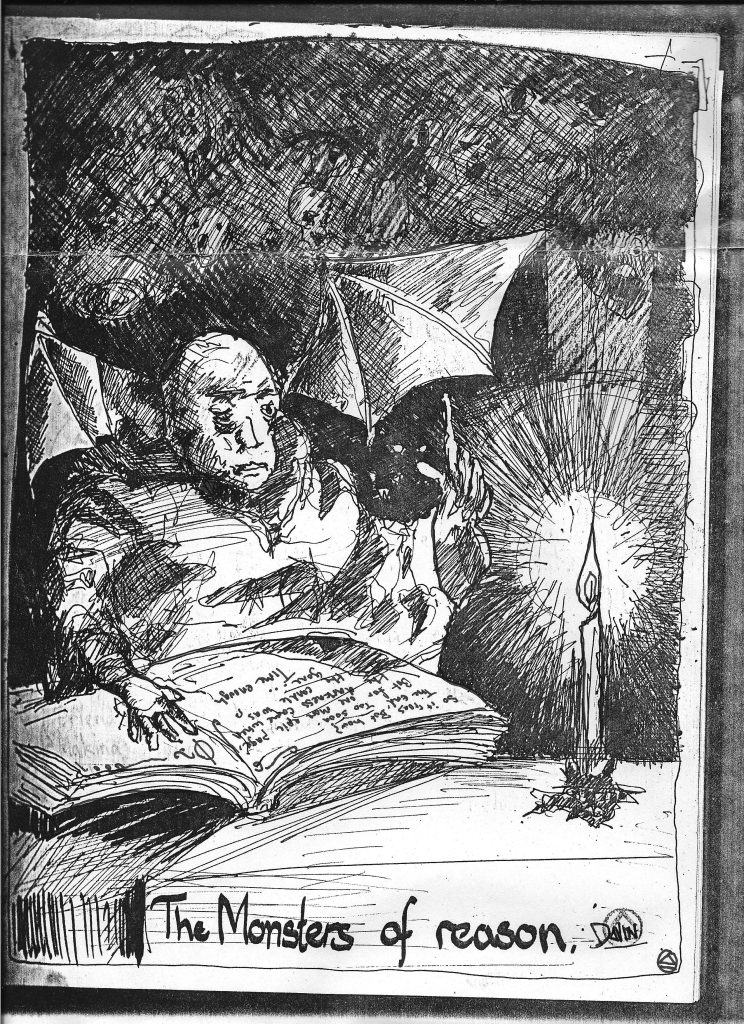 The monsters of reason was inspired by the way that huge environmental disasters or pollution events or war crimes for that matter are justified is by reasoning arguments for both sides so therefore where the monsters of reason lie.